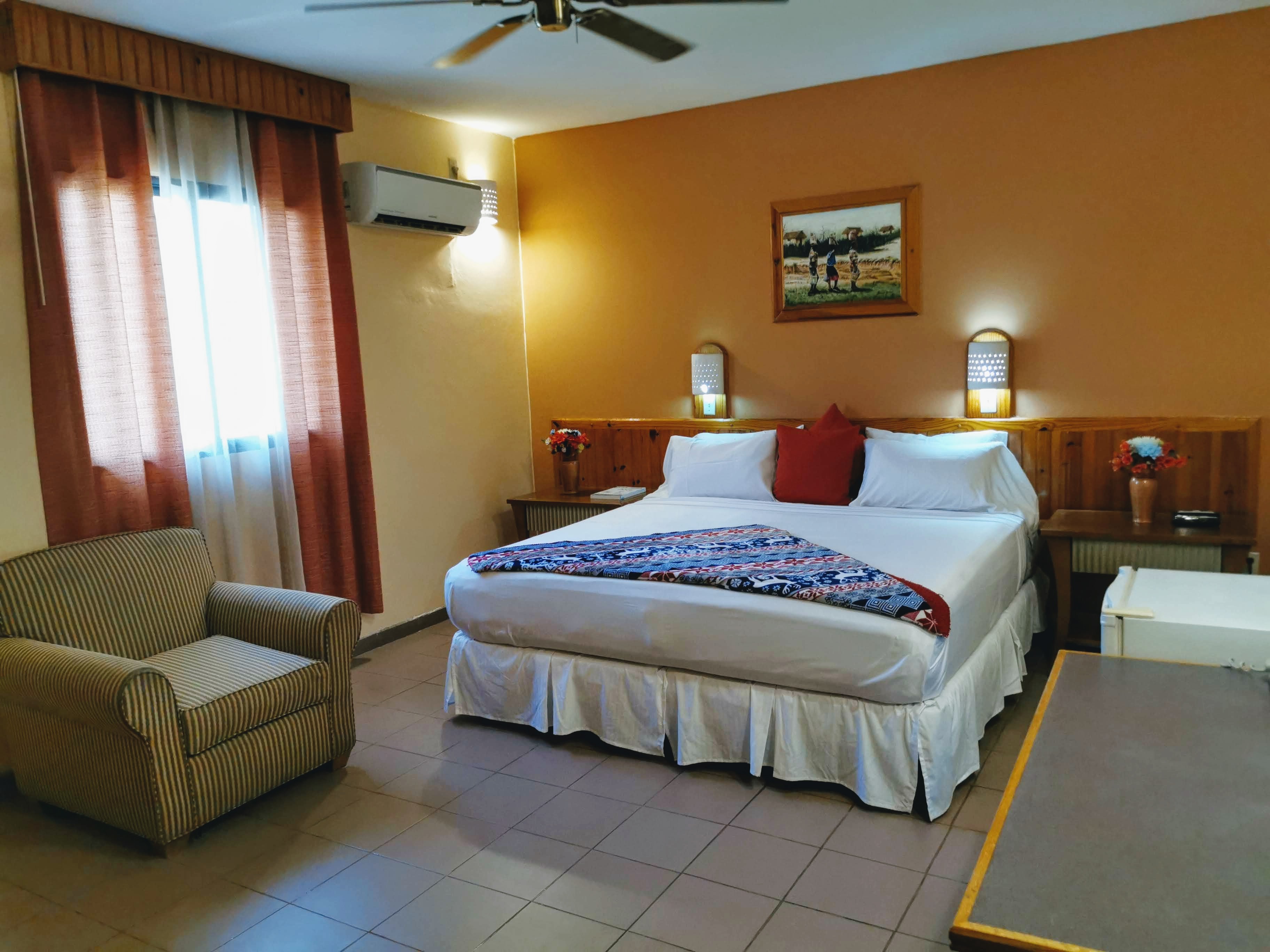 Commodités: • Service à la chambre • stationnement gratuit et sécurisé 24/24 • Salle d'exercise • WIFI gratuit• Piscine • Billard • TV • Frigo • coffret de sécurité • service de blanchisserie • 2 Bars (American A/C Bar, et Choucoune) • Mariages et èvenements